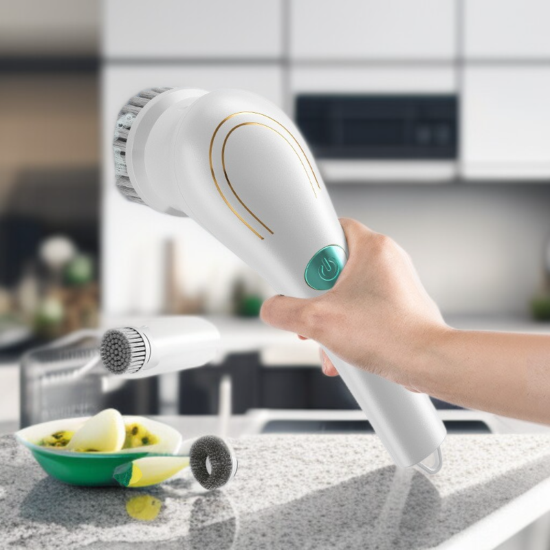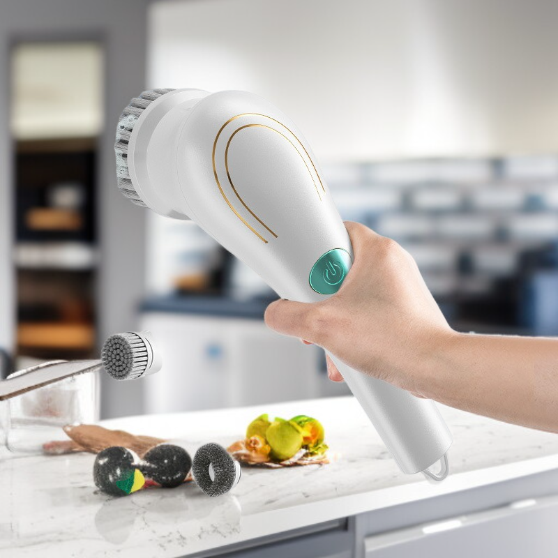 ● Comes with 5 interchangeable brush heads to tackle a variety of cleaning tasks, making it perfect for bathrooms, bathtubs, wall tiles, floors, and kitchens.